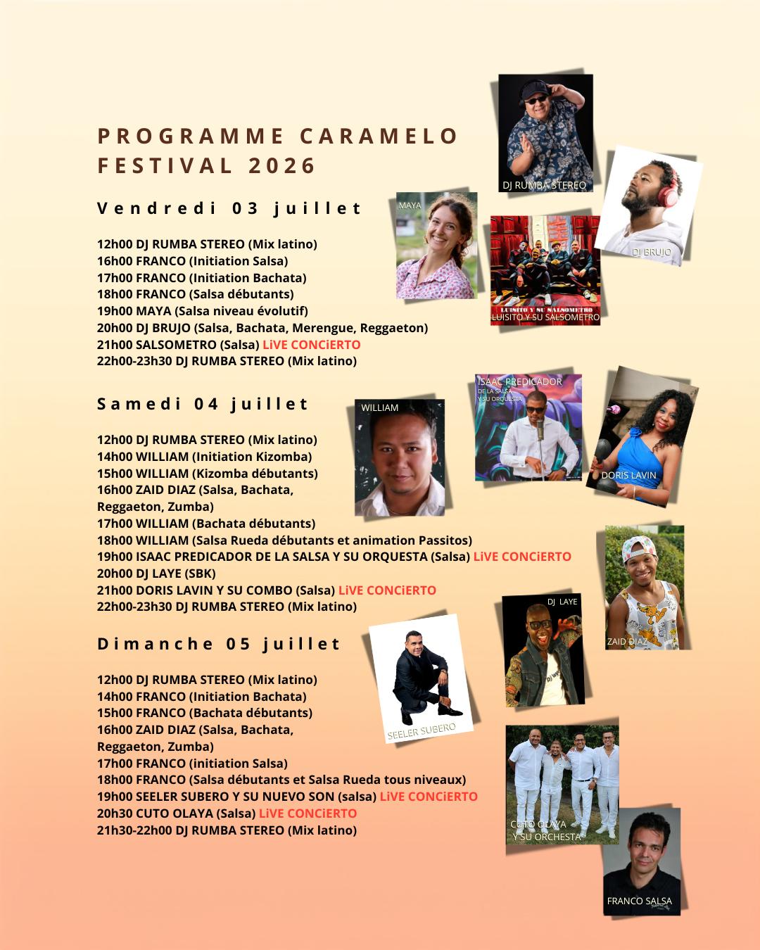 Le dimanche 06 juillet 2025, le public de la Place de la Navigation à Lausanne Ouchy a vibré aux sons du maestro péruvien CUTO OLAYA, malgré une météo un peu capricieuse. Le chanteur à la voix magique a envoûté l’ensemble du public venu profiter des derniers concerts et rayons de soleil en clôture de la 5ème édition du CARAMELO FESTIVAL. Les jours d’avant, les gropupes CHAO et DORIS LAVIN Y SU COMBO avaient emerveillé les amateurs de salsa qui s’étaient déplacés dès les premières heures de la journée pour apprécier les animations de DJ RUMBA, DJ LAYE, DJ YASSER. Les ateliers de FEDERICA PEDROSO, FRANCO SALSA , MIJAIL GALANO, EMMANUEL ET VIRGINIE, VANESSA MAIA et WALTER ET AUDREY ont également rencontré un franc succès. Durant 3 jours, plus de 20 animations et concerts se sont tenus au bord du lac dans une ambiance festive, en présence d’une foule estimée à 6000 personnes. Le festival remercie l’extraordinaire public qui a répondu présent. Les remerciements vont également aux participants, aux commerçants, à notre équipe technique et surtout à nos nombreux bénévoles. Rendez-vous en été 2026 pour une nouvelle édition de l’un des plus passionnants festivals latinos de Suisse romande.